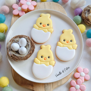 Dans la photo : biscuits sablés décorés au glaçage royal à la main.